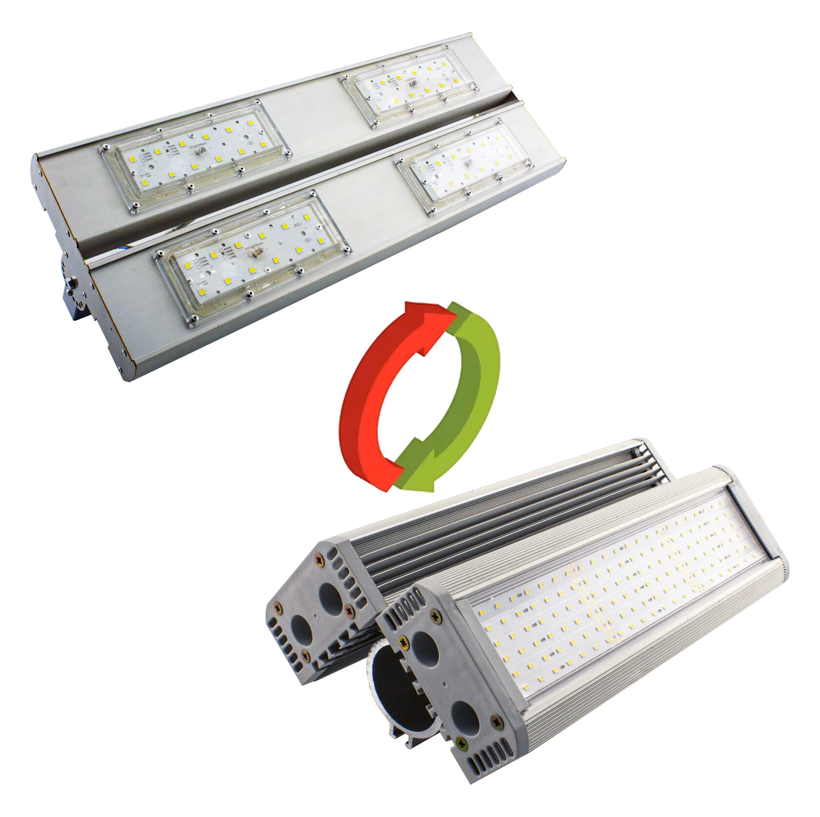 Подходят для освещения складских и иных помещений с высокими пролетами от 4 до 16 метров.